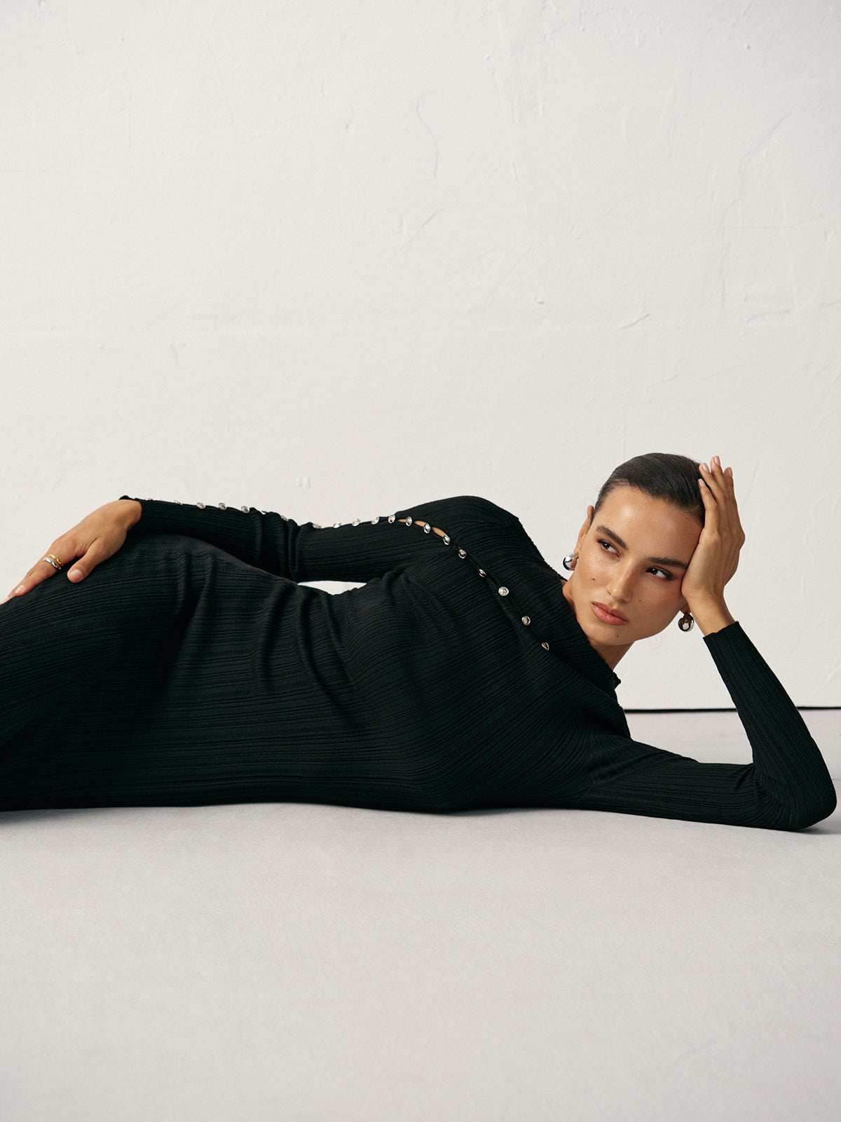 Robe Pull Ajustée en Laine Mélangée Texturée